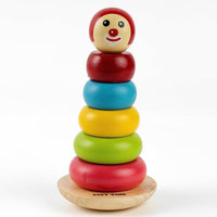 Let the fun of solving stack begin with our 100% wooden Dancing Clown Ring Stackers. Foster cognitive development of your little one with this safe toy, crafted from naturally seasoned wood and adorned with safe watercolors, featuring a dancing clown figure. Say goodbye to plastic and introduce your toddler to this safe yet curious toy as a natural alternative.